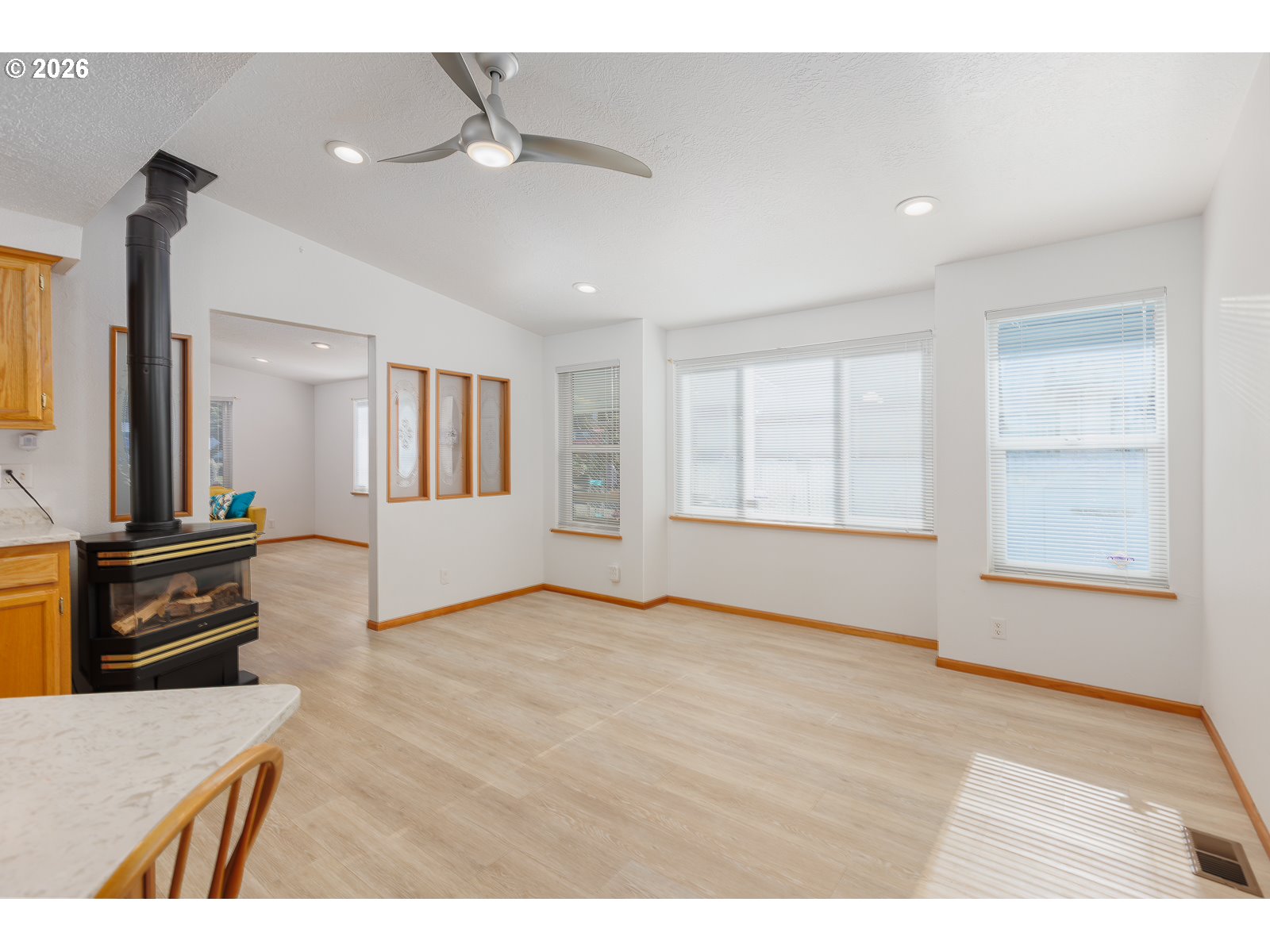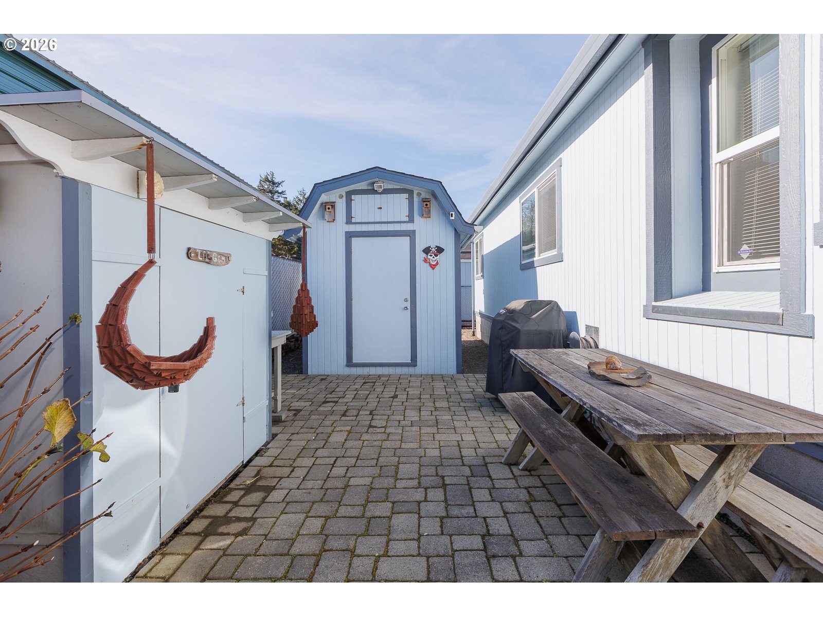 - Well-maintained single-level beach retreat in Gleneden Beach, set on a level, low-maintenance lot. A covered front porch welcomes you into a light-filled home featuring vaulted ceilings, large windows, and newer laminate flooring throughout. Perfect for full-time living or for your vacation getaway. Two distinct living areas offer flexibility for entertaining or relaxing—one adjacent to the dining area, and the other connected to the kitchen with a cozy gas fireplace. The well-appointed kitchen features updated quartz countertops, wood cabinetry, and an eat-in bar. The airy primary suite includes a walk-in closet and ensuite bath with walk-in shower, soaking tub & dual vanities. A spacious second bedroom, plus a functional laundry room with built-in storage, desk/folding space, and utility sink, add to the home's practicality. Updates include a 2008 roof, updated plumbing & electrical (including can lights and updated lighting), a paver patio and small retaining wall, new siding & exterior paint in 2024, auto-on natural gas Generac generator w/ owned propane tank backup (2020), Ring security cameras & Protection One security system. Outdoor features include a paver patio ideal for BBQs, a storage shed/workshop, and a backup propane generator. Conveniently located near restaurants, cafes, and multiple beach access points, this Gleneden Beach neighborhood is ideal for walking, biking and embracing the coastal lifestyle.