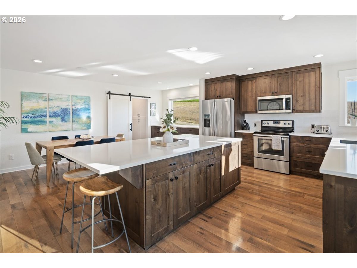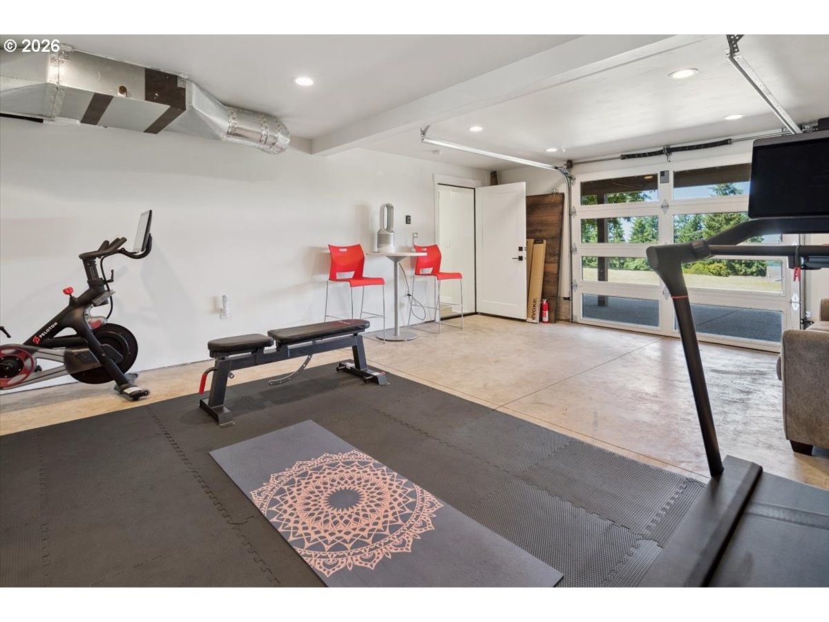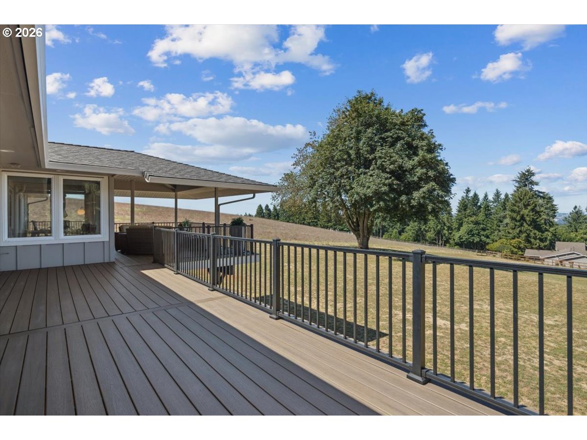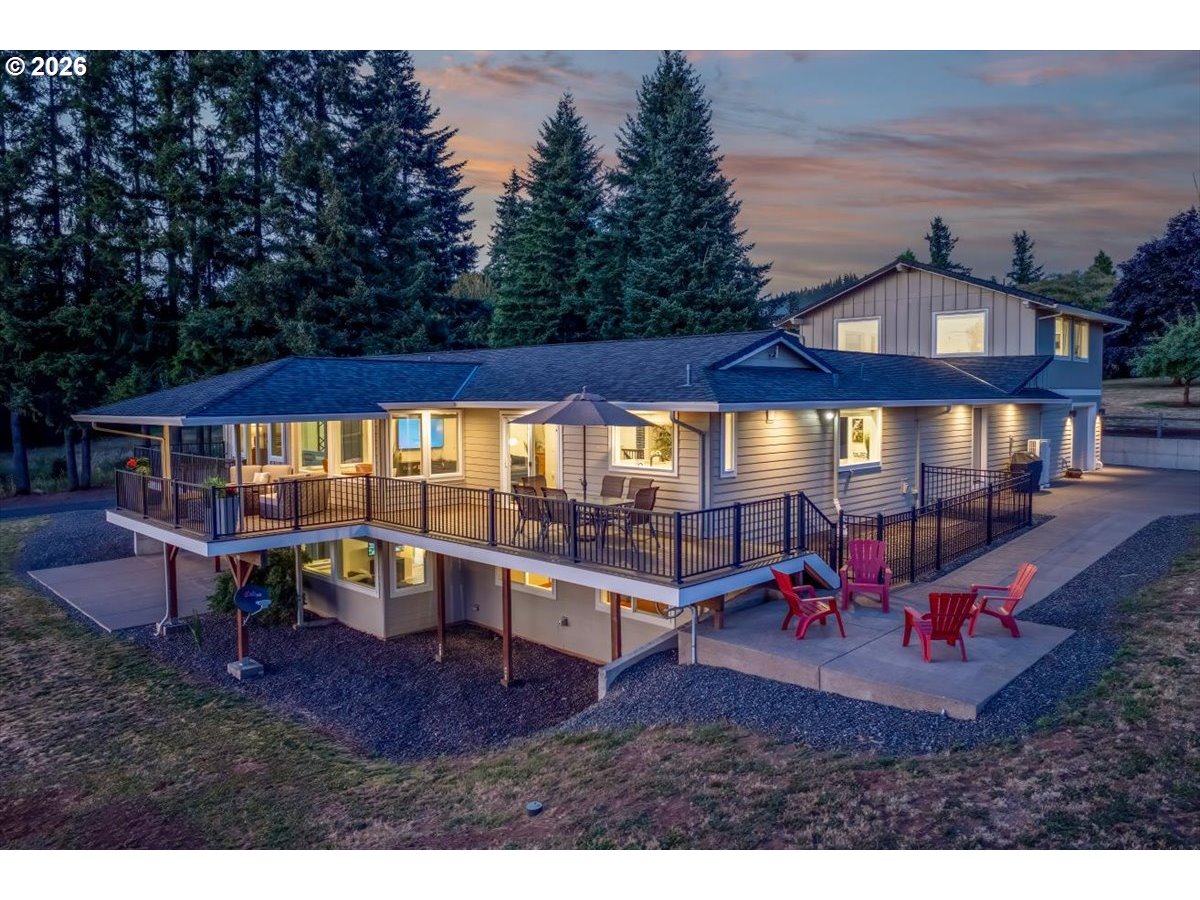- Set behind a private drive on flat, fully usable acreage in the coveted Hamlet area of Stafford, this home captures the privacy and scale that define true Stafford living. Spanning over 4,000 sq ft, the floor plan centers on true main level living with flexibility without compromise. Main living spaces are defined by vaulted ceilings, exposed beam detail, and walls of windows that frame unobstructed westerly views and fill the interior with natural light. Sliding doors off the living room open to a covered deck designed for year round enjoyment and effortless indoor outdoor connection. The spacious primary suite on the main level feels expansive yet serene, with direct deck access and a soaking tub intentionally placed within its own picture frame view of the landscape beyond. A generous walk in closet with custom built ins and a dedicated laundry area is thoughtfully incorporated for seamless daily living, elevating the suite into a true private retreat. The kitchen anchors both gathering and daily function with substantial island seating, abundant cabinetry, and seamless flow into dining and living areas. Downstairs, additional bedrooms, a full bathroom, a generous family or bonus room, and a dedicated home gym expand the home’s versatility and function. A separate upper wing with kitchen, bath, and laundry offers a fully self contained living space with exceptional versatility. Meaningful updates reflect attentive ownership, including newer mechanical systems and roof. An oversized four car garage, detached shop, and substantial mudroom and laundry off the garage complete this exceptional offering. Usable acreage allows for gardens, recreation, or future expansion, including space for a pool. The grounds provide both openness and privacy, creating true separation from neighboring properties. A property where scale, usability, and design align.
