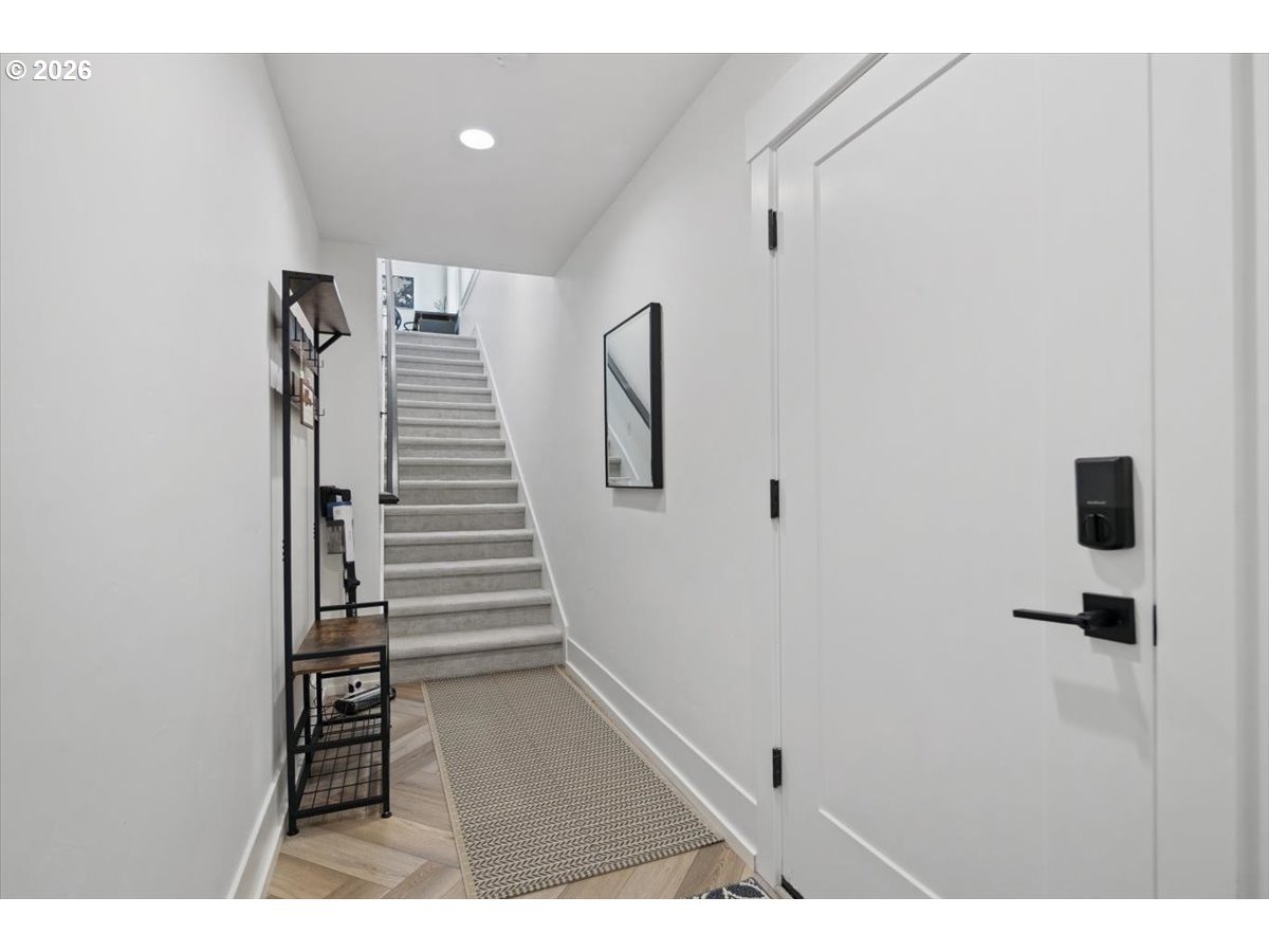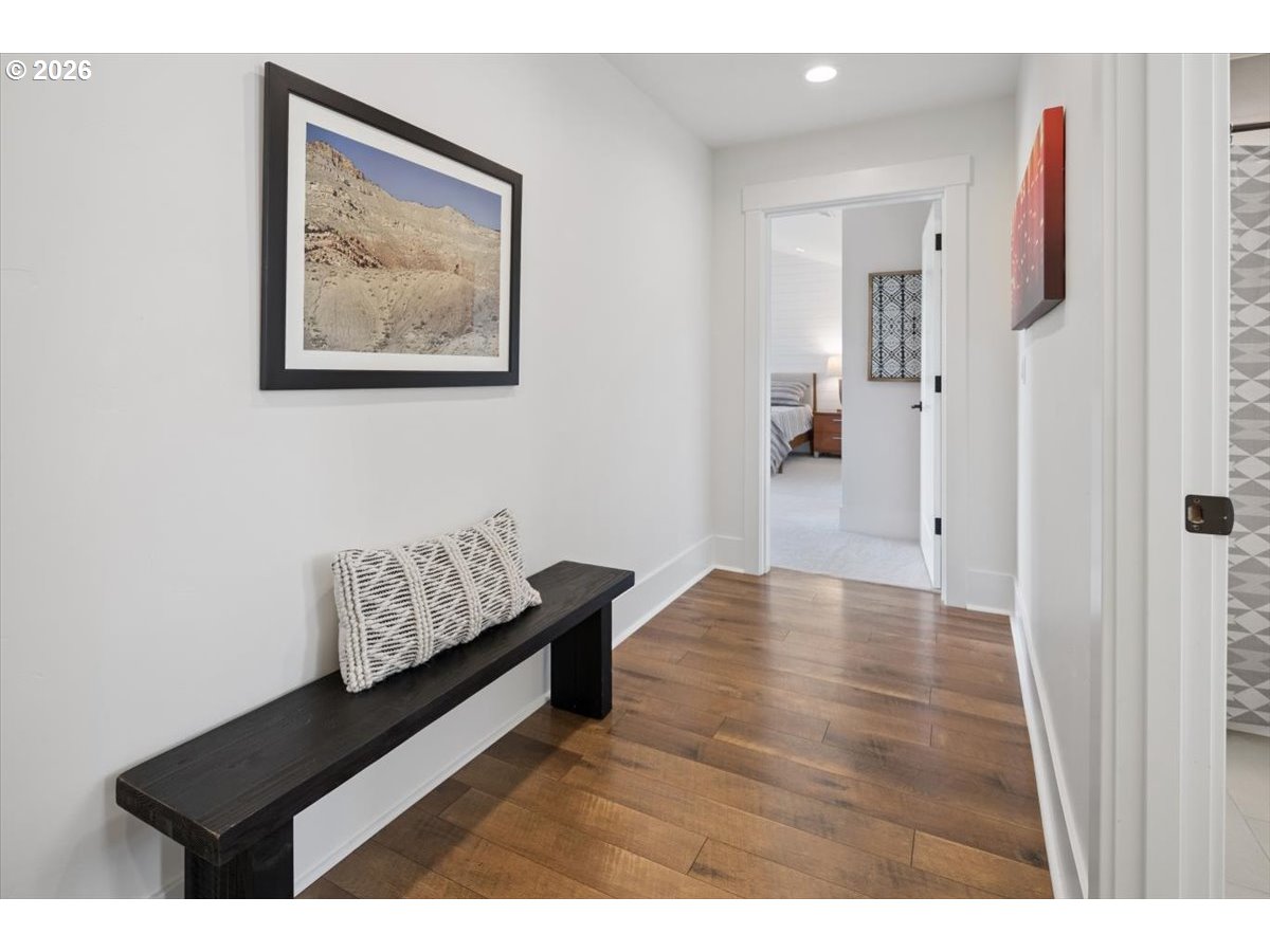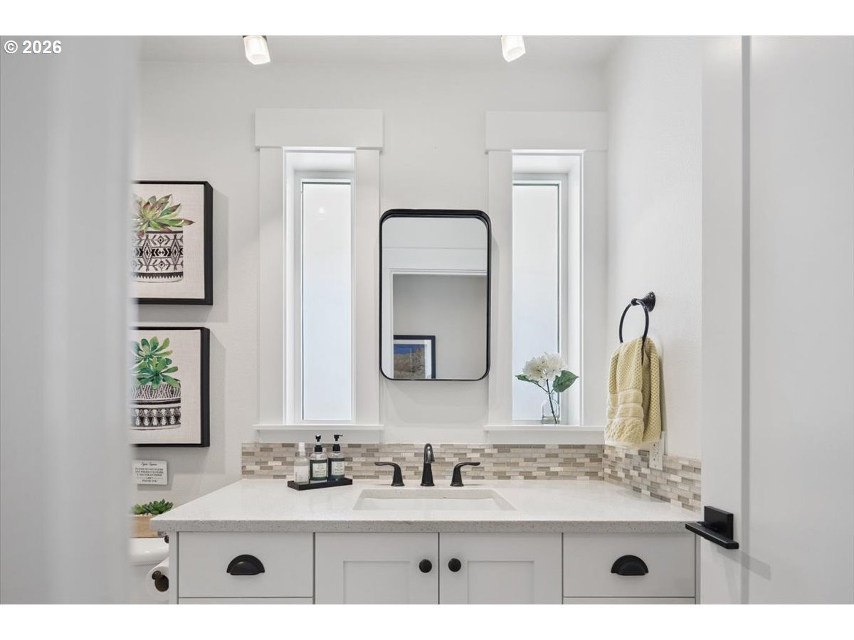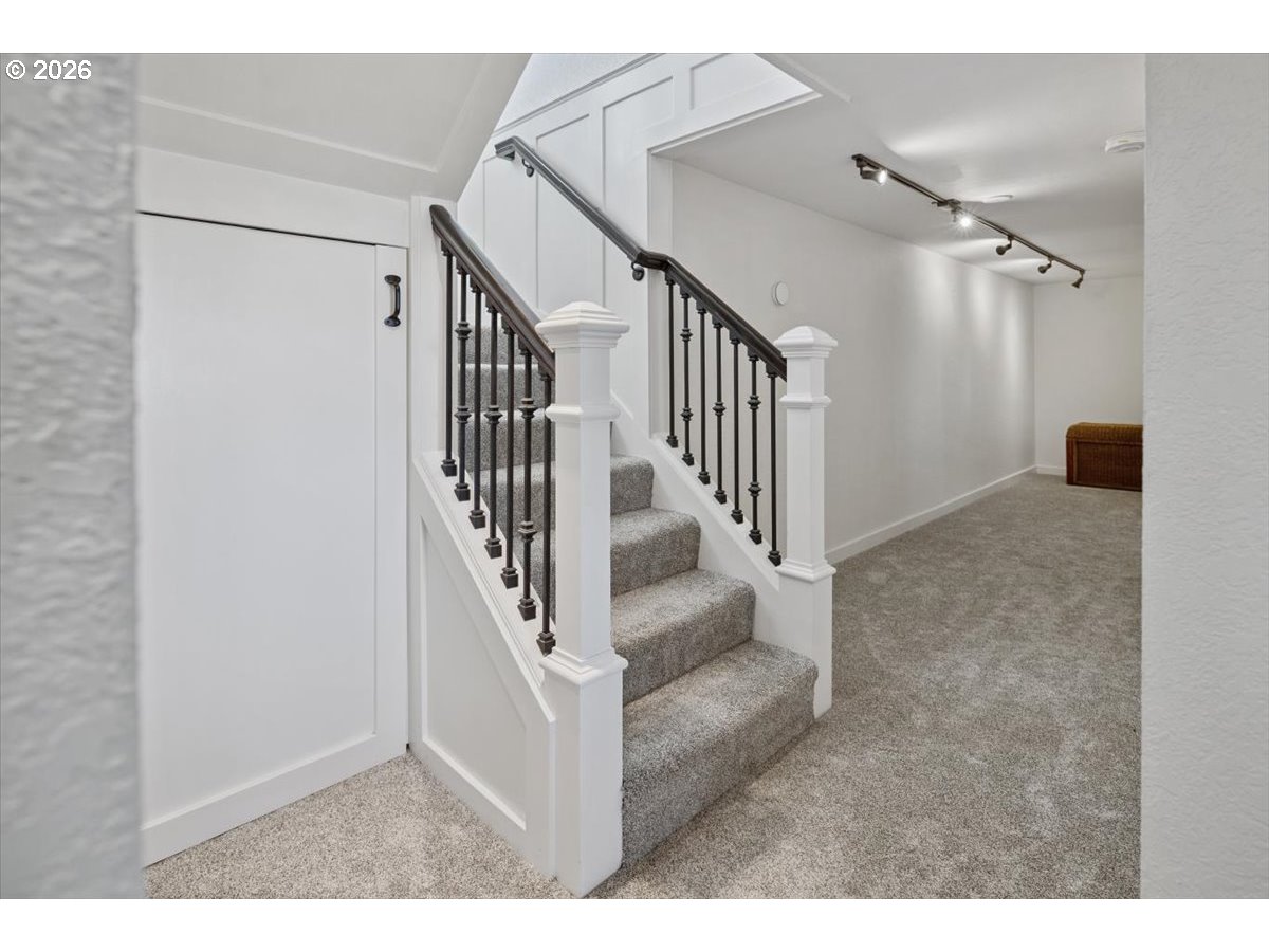 - Set behind a private drive on flat, fully usable acreage in the coveted Hamlet area of Stafford, this home captures the privacy and scale that define true Stafford living. Spanning over 4,000 sq ft, the floor plan centers on true main level living with flexibility without compromise. Main living spaces are defined by vaulted ceilings, exposed beam detail, and walls of windows that frame unobstructed westerly views and fill the interior with natural light. Sliding doors off the living room open to a covered deck designed for year round enjoyment and effortless indoor outdoor connection. The spacious primary suite on the main level feels expansive yet serene, with direct deck access and a soaking tub intentionally placed within its own picture frame view of the landscape beyond. A generous walk in closet with custom built ins and a dedicated laundry area is thoughtfully incorporated for seamless daily living, elevating the suite into a true private retreat. The kitchen anchors both gathering and daily function with substantial island seating, abundant cabinetry, and seamless flow into dining and living areas. Downstairs, additional bedrooms, a full bathroom, a generous family or bonus room, and a dedicated home gym expand the home’s versatility and function. A separate upper wing with kitchen, bath, and laundry offers a fully self contained living space with exceptional versatility. Meaningful updates reflect attentive ownership, including newer mechanical systems and roof. An oversized four car garage, detached shop, and substantial mudroom and laundry off the garage complete this exceptional offering. Usable acreage allows for gardens, recreation, or future expansion, including space for a pool. The grounds provide both openness and privacy, creating true separation from neighboring properties. A property where scale, usability, and design align.