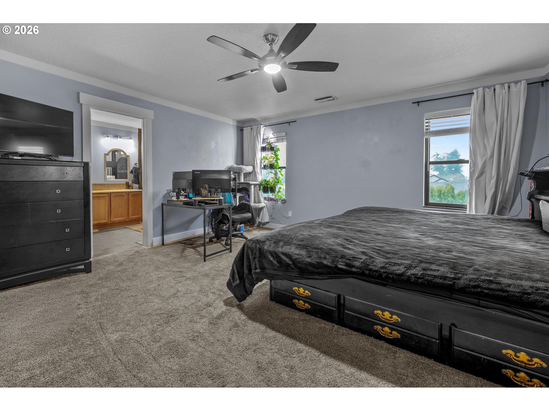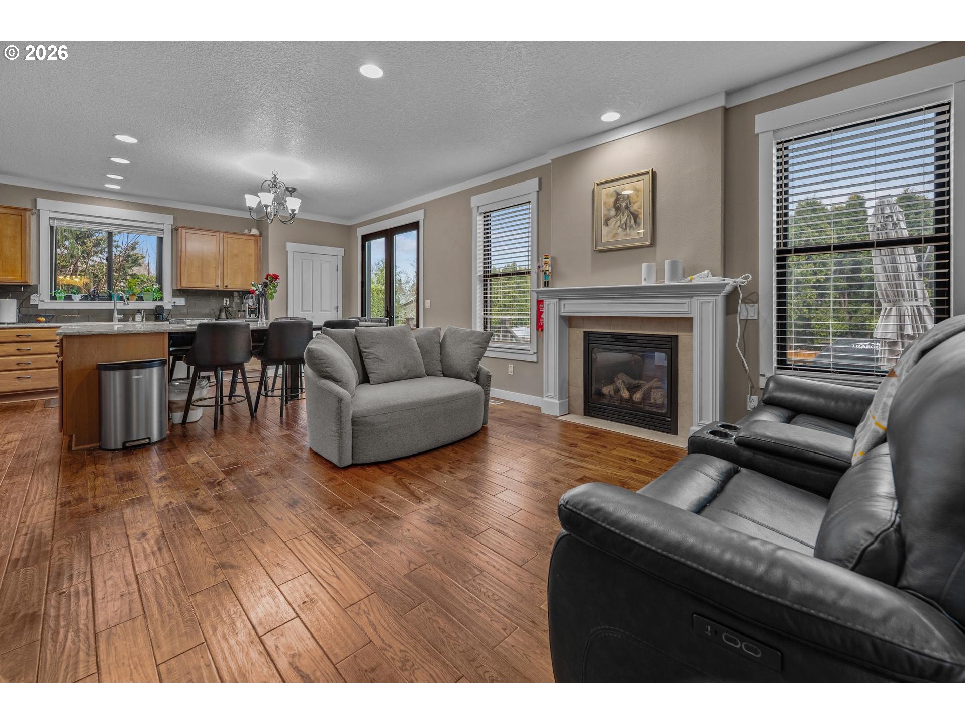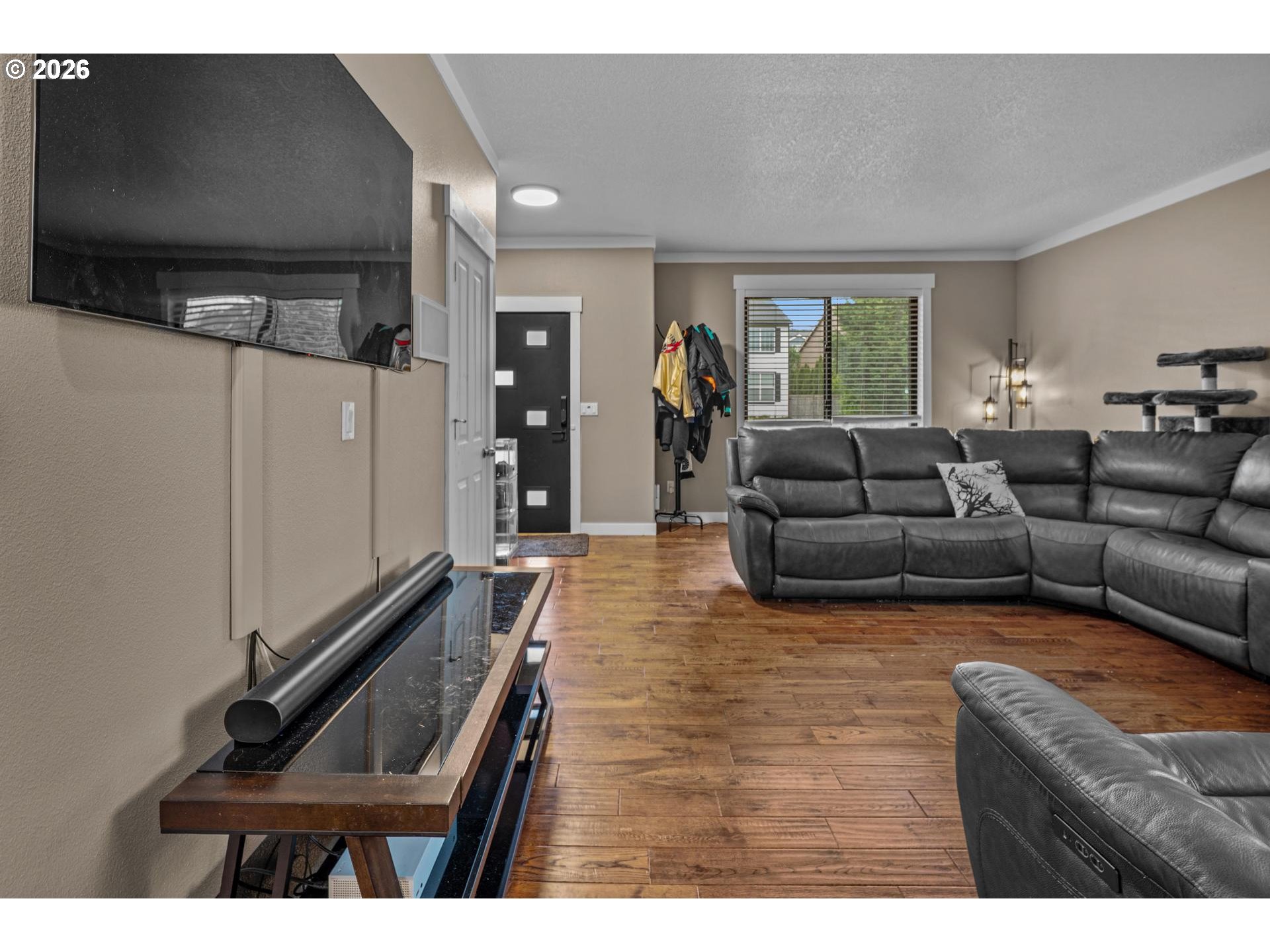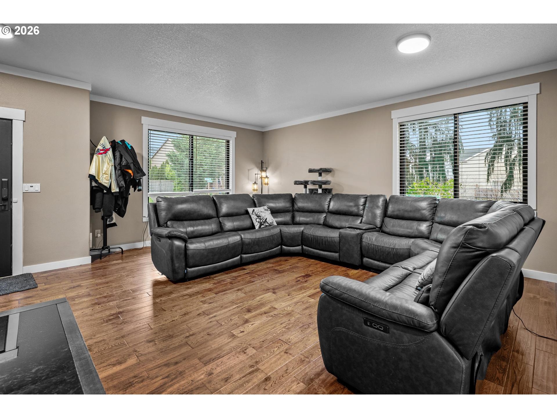 - Corner Lot! Fresh Carpeting! And more! Current owners were planning to stay here for the long haul, but life has its own plans, so now feature upon feature upon upgrade await you. This is a spacious house, with 4 bedrooms, 3 full baths, an Office/Den (currently used as a 5th bedroom), and a Bonus Room fully wired for 5.1 surround sound. This room includes a 12 FOOT in-wall projector screen, optimally placed ceiling mount, and motorized blackout curtains- all designed to make for the perfect movie night or gaming session. (Owner is willing to negotiate leaving the existing Sony 4K projector, Denon receiver, Klipsch speaker system, and theater seating so you can take advantage day one). The 15x15 Primary suite leads directly to the primary bathroom and a large walk-in closet. Plenty of shelving, hanging space, and drawers to the left, and to the right a beautifully renovated walk-in shower. The open main floor, upgraded kitchen with new Samsung appliances, plus beautiful French Doors leading to a full-length back deck with Master Spa hot tub all make entertaining easy. Peace of mind is instantly yours in this move-in ready house. Standout upgrades that replace the initial construction from 2008 include- New 40 year roof installed in May 2024 and New Andersen Windows and Exterior Doors installed December 2024. Ion Solar Panels in fall of 2022 and Lennox Furnace/heatpump/AC in January 2023 keep the PGE bills low. Water heater serviced and new Aux Tank in 2025. Cordless Graber window coverings installed in 2022. All with warranties that can transfer to the new buyer. Located just 8 minutes away from the Lewis and Clark and Dabney recreation points on the Sandy River, this well-loved home is tucked away from the metro area but is still close enough to I-84 to make getting in for a night on the town or a Blazers game an easy 30 minute drive. Do not miss out on what could be a perfect home for your family.